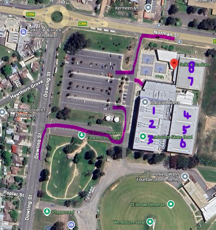 Ballarat Grammar School Rintel Centre: Courts 9-11 are accessible through Gate D on Forest Street and teams are asked to park on Forest street and not on schools grounds. Saturday morning is the school’s open day so there will be significant traffic in the area and walking around the grounds and through the stadium. Please enter the gym through door 7, where you will also be able to grab coffee from the DEJA BREW XPRESSO van from 7:30am to mid afternoon